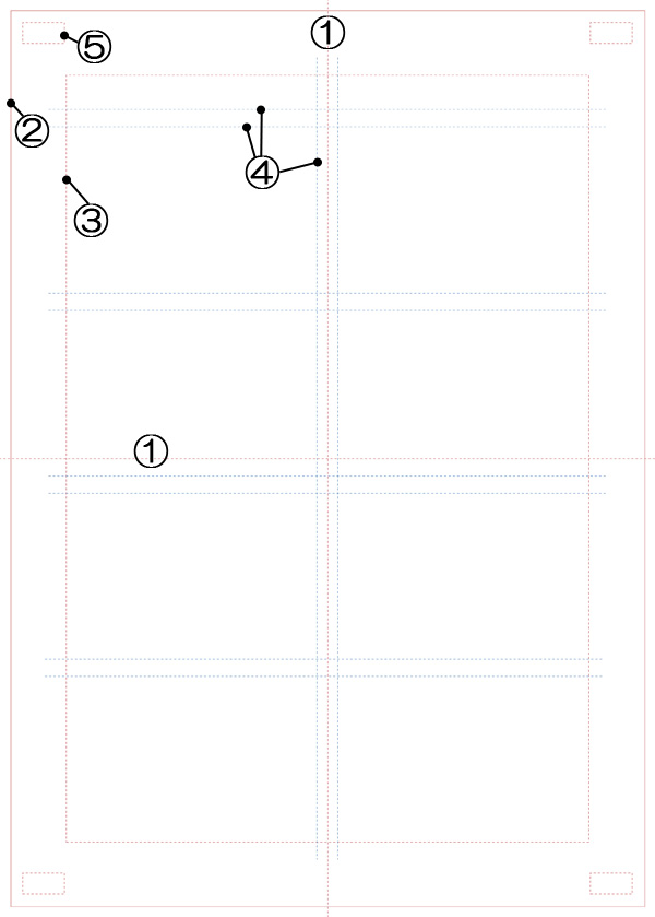 ・・・ページ番号が入る時の目安。 枠を組んで被らないのなら絵などを避けると吉。 |